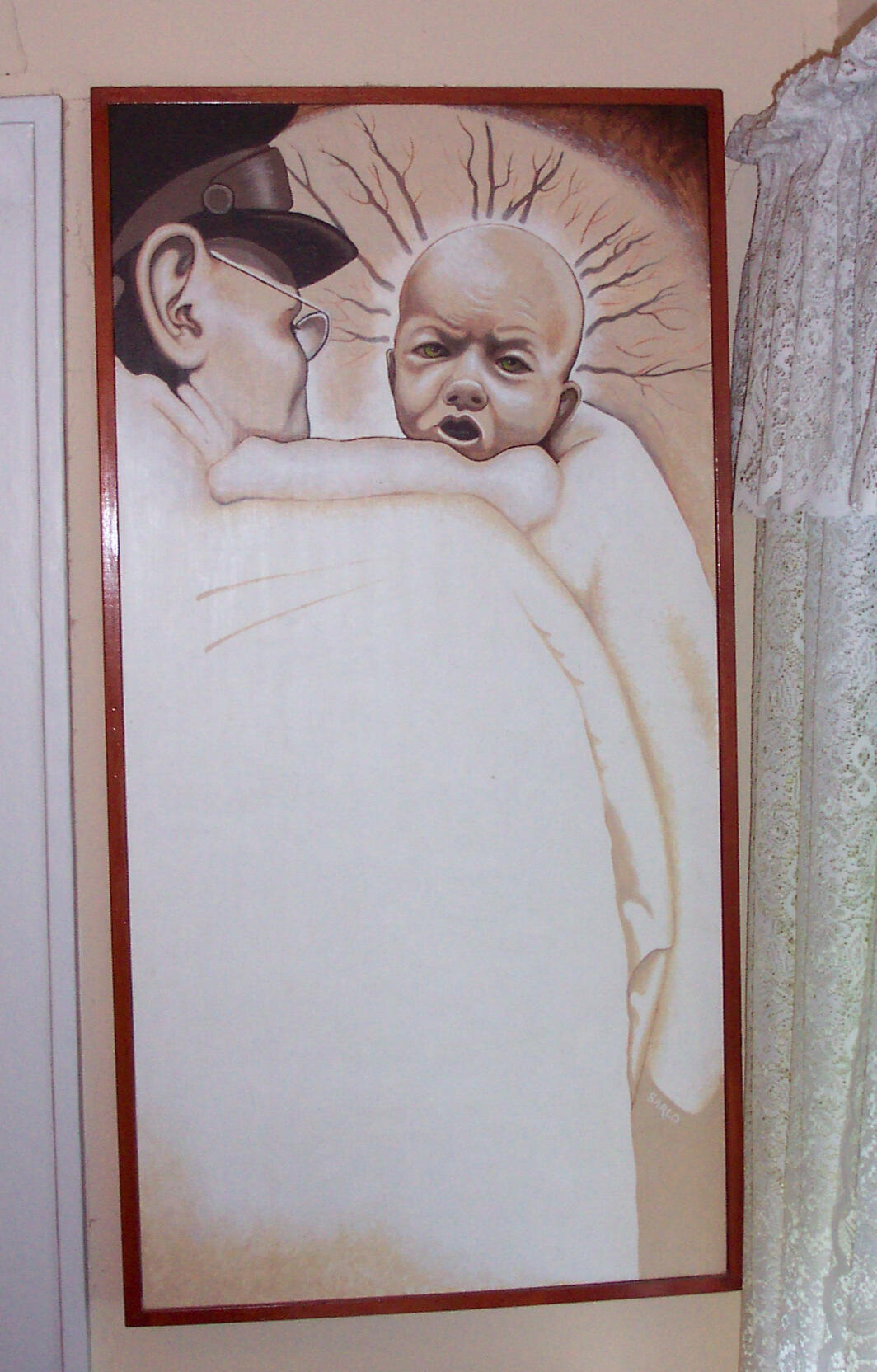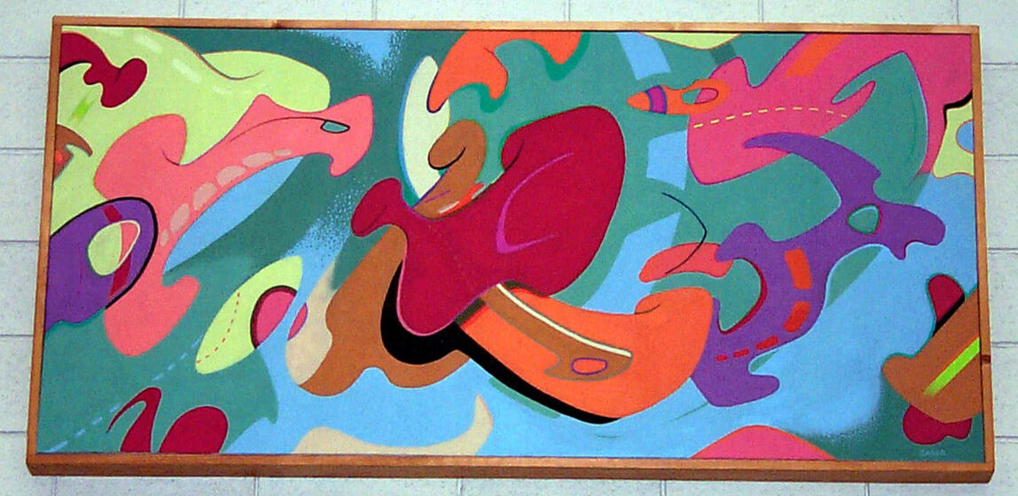 "Meeting Like This" (©️ 1995. 4'x6' acrylic on canvas.)